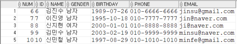 위의 사진과 같이 ID와 별개로 순서를 알 수 있는 것이 ROWNUM이다.